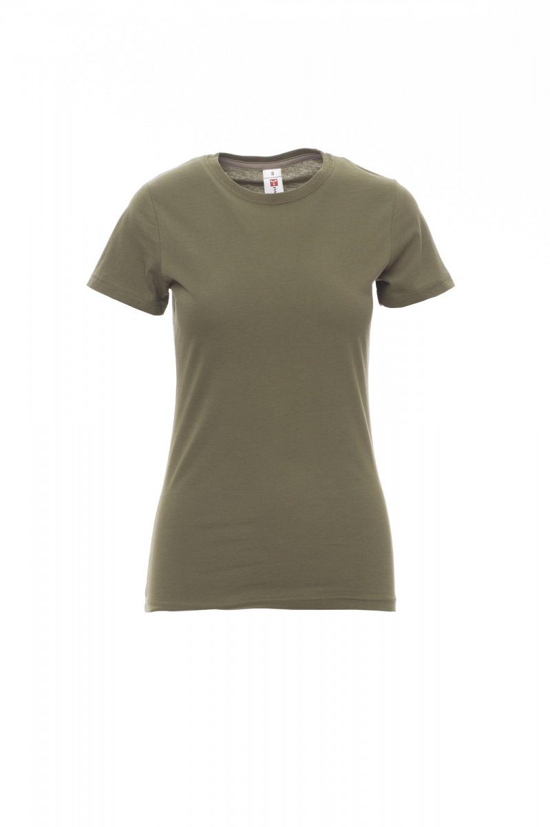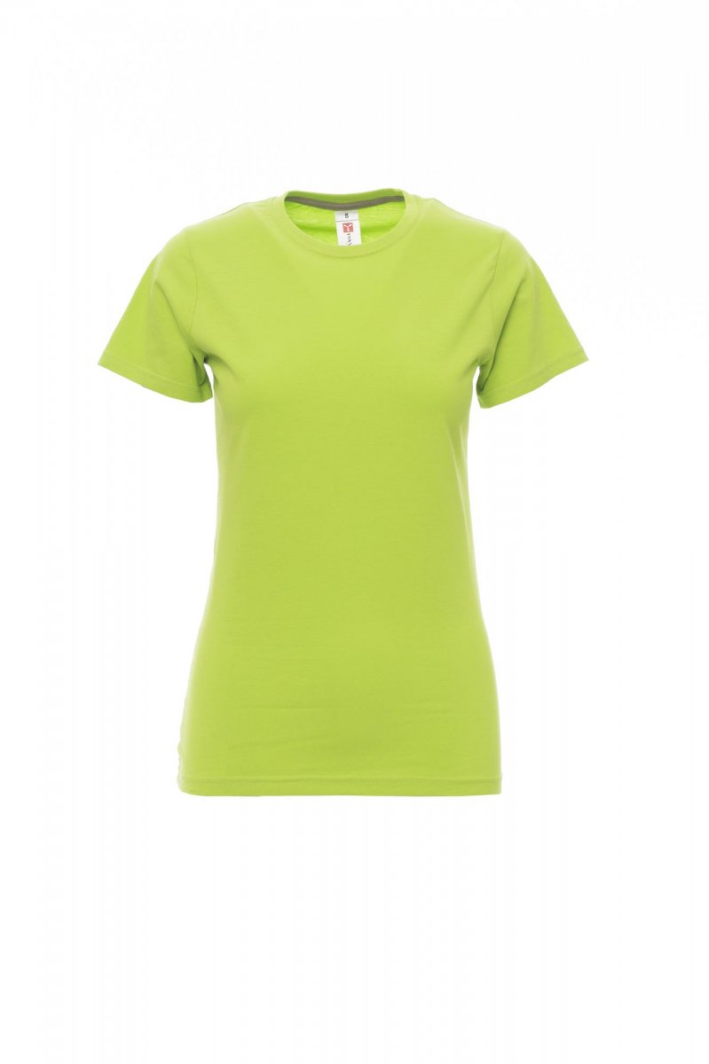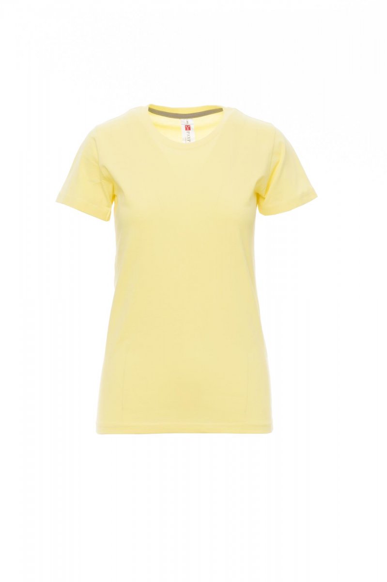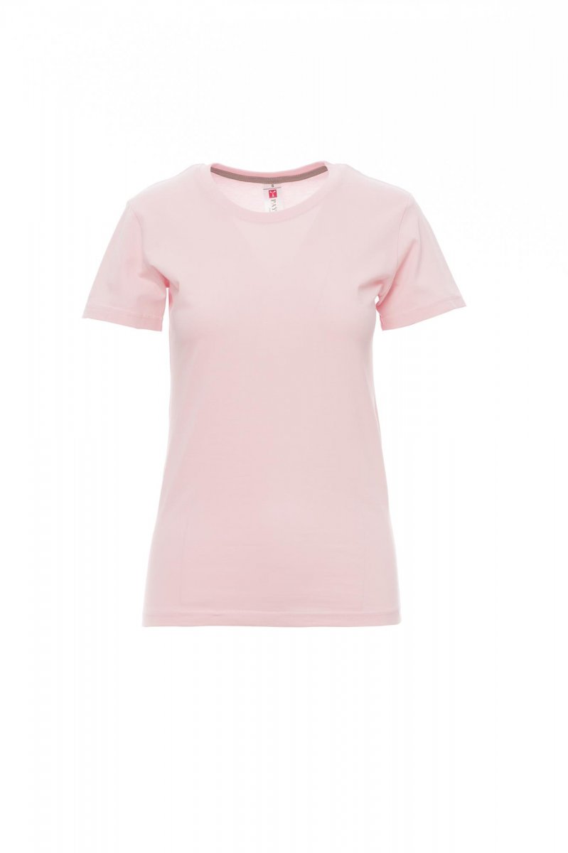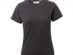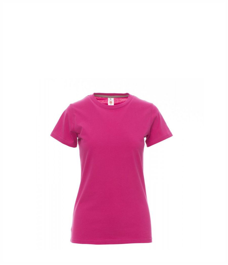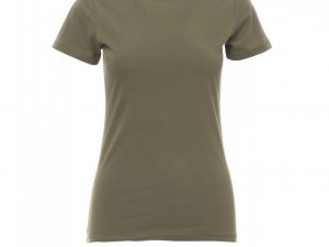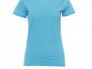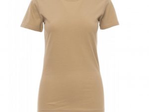 Ženska oprijeta majica s kratkimi rokavi in okroglim izrezom, z 1,5 cm debelim rebrastim ovratnikom iz mešanice elastana z zgornjimi šivi spredaj, kontrastnim ojačitvenim trakom od ramen do ramen, vidnim na notranji strani ovratnika, raztegljivimi šivi in stranskimi šivi. Majice v 24 različnih barvah so odličen izdelek za promocijo vašega podjetja. NUDIMO VAM TUDI DOTISK: