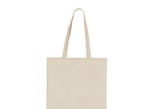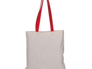 Bombažna torba z dvema dolgima ročajema, izdelana iz 75 % recikliranega bombaža in 25 % recikliranega PET. Teža blaga: 140 g/m². Velikost 38 x 42 cm. NUDIMO DOTISK: