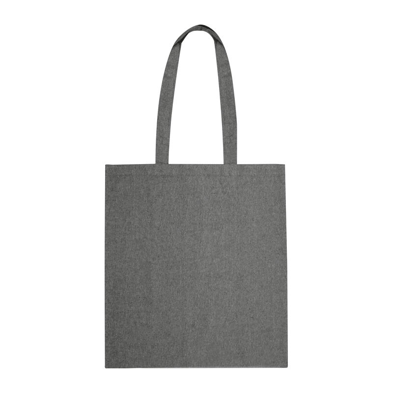 Reciklirana bombažna vrečka Oeko-Tex® Standard 100 z dolgimi ročaji, izdelana iz tkanine 140 g/m². Velikost: 37,6 × 41,7 cm. NUDIMO DOTISK.